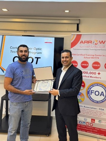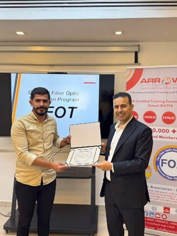 Arrow Academy is proud to announce the successful completion of the FOA Certified Fiber Optic Technician (CFOT) program for Umniah’s Projects and Operations teams within the Engineering Department, as well as the field technical team at Synaptic.
