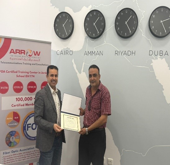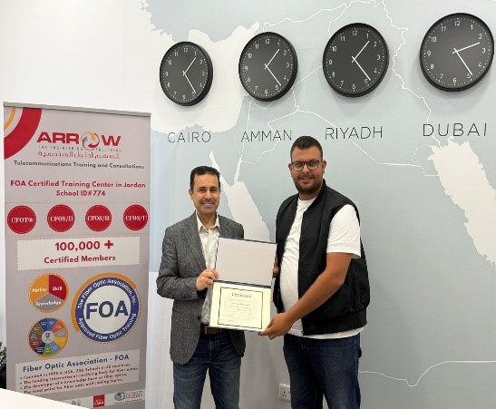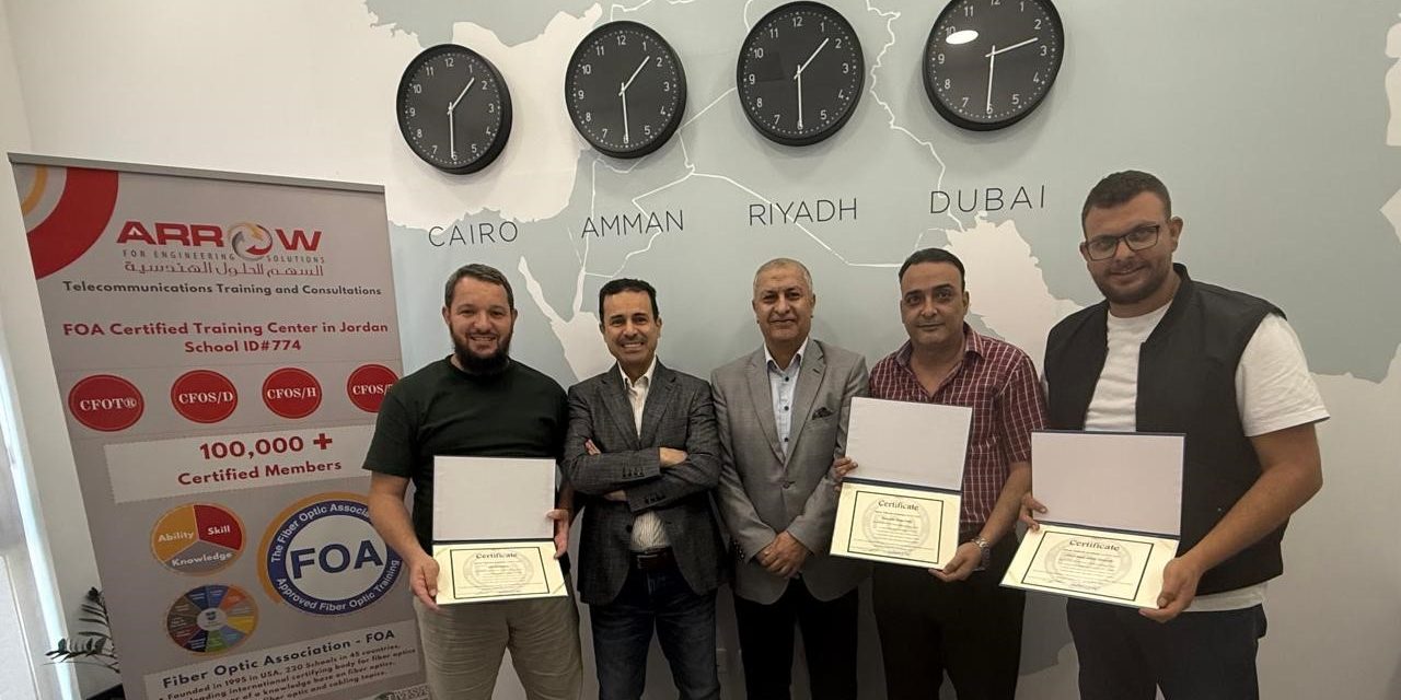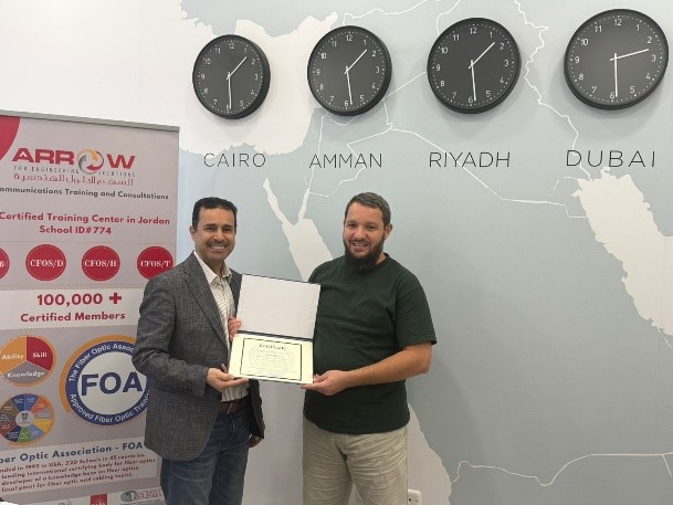 Arrow Academy is proud to announce the successful completion of the internationally accredited Fiber Optic Association (FOA) Certified Fiber Optic Program by a distinguished group of professionals from Nokia Irbid, Greater Amman Municipality (GAM), Synaptic, and Fiber Technology – Algeria.
