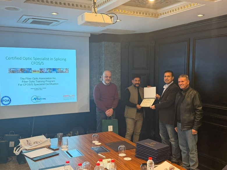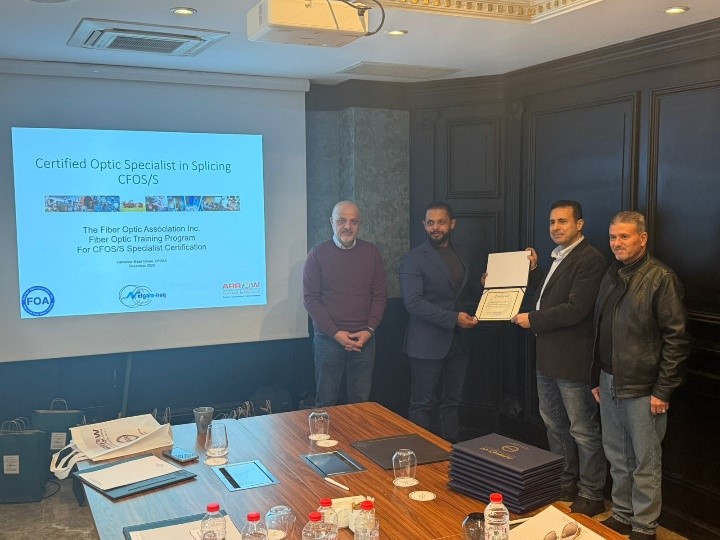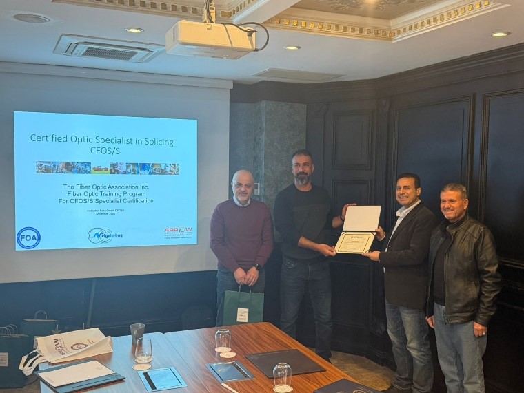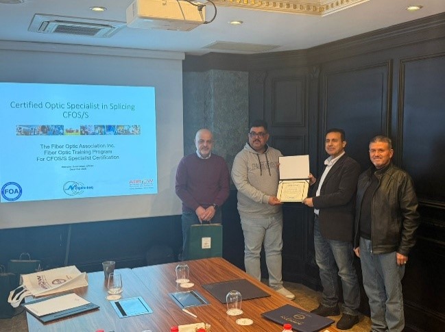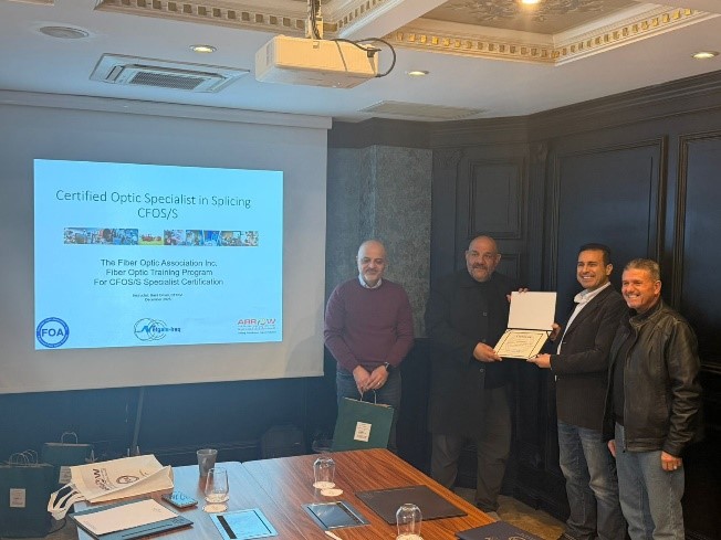 The program combined in-depth theoretical instruction with intensive hands-on practical sessions, focusing on industry best practices in fiber preparation, fusion splicing, inspection, and testing. Participants demonstrated strong technical competence throughout the course and successfully passed the international certification exam issued by the Fiber Optic Association (FOA) at the end of the training.