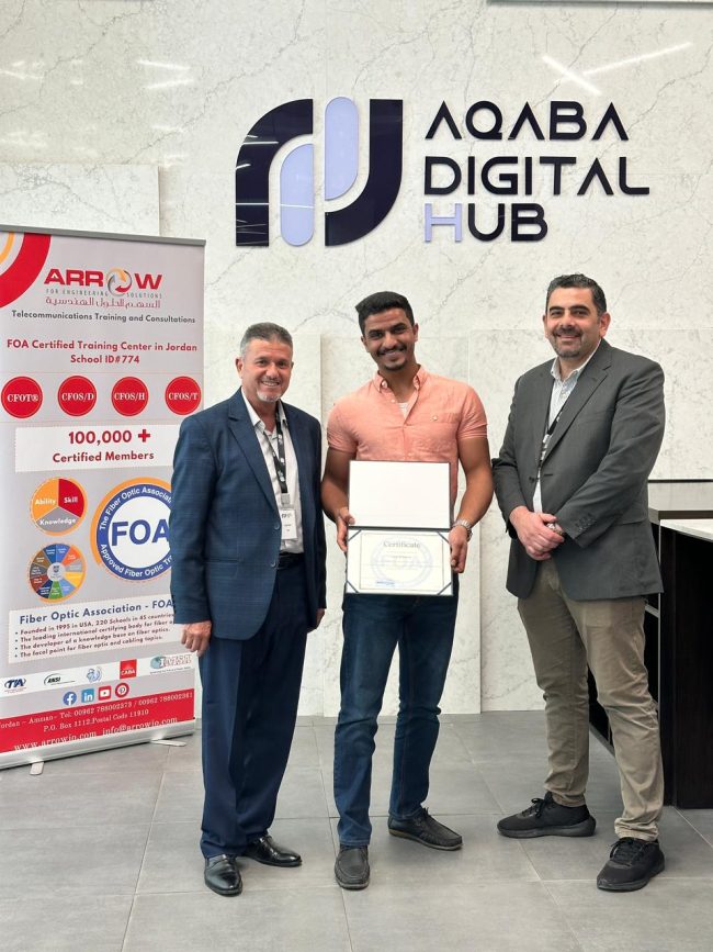Arrow Academy is proud to announce the successful completion of the Certified Fiber Optic Technician (CFOT®) training program by the technical team of Naitel, held in Aqaba. The participants have successfully passed the international certification exam administered by the Fiber Optic Association, demonstrating their strong technical competencies in fiber optic installation, testing, and best industry…
